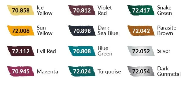 Die Squidmar-Sets sind mit denselben Farben erstellt, die Squidmar Miniatures in ihren Projekten verwendet, von Hauttönen und Leder bis hin zu nächtlichen Atmosphären und nicht-metallischen Effekten, um alle Arten von Fantasywesen zu gestalten.
